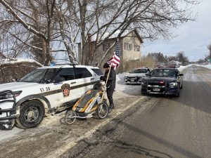 North East, PA — Fuller Hose Company #1, in coordination with the Pennsylvania State Police and the North East Police Department, provided traffic control and escort support today as Noah Coughlan ran through North East, PA as part of his national Run for USA journey.