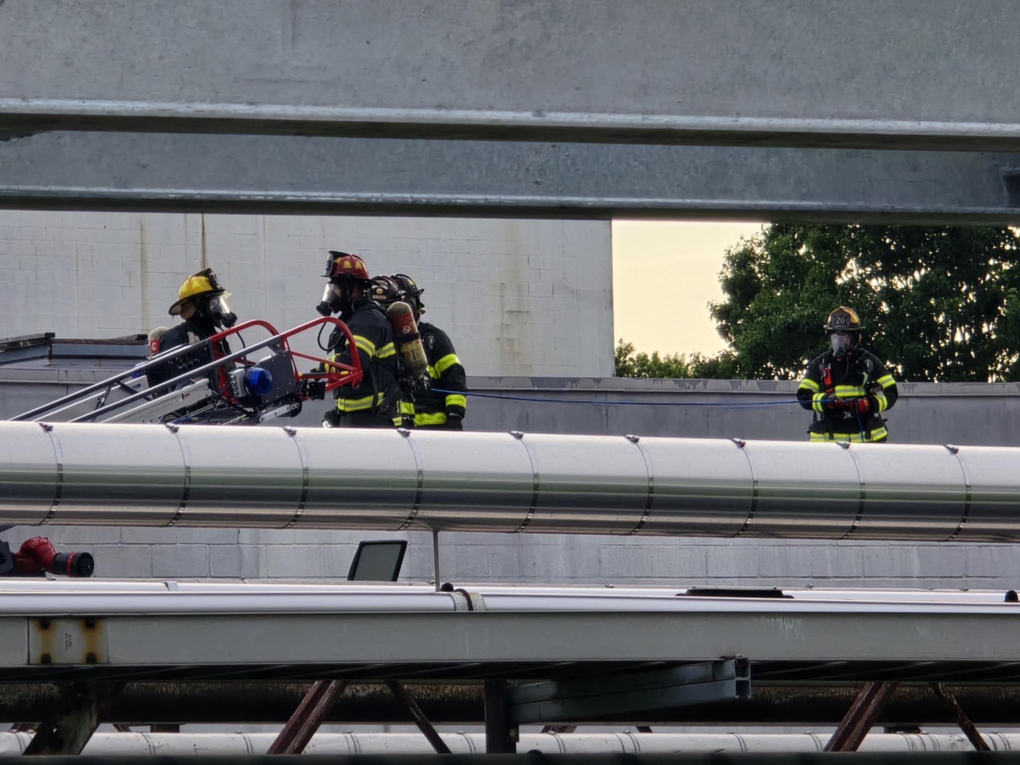 Engine 204’s crew joined the operation on the roof and successfully rescued and removed the patient to a safe zone, where both the patient and responding personnel underwent full decontamination procedures.