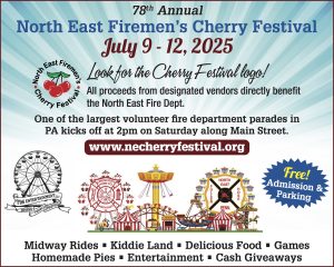 Over the past month, dedicated members of the North East Fire Department have covered every corner of North East Borough and Township—north, south, east, and west—collecting donations for the 78th Annual North East Firemen’s Cherry Festival.
